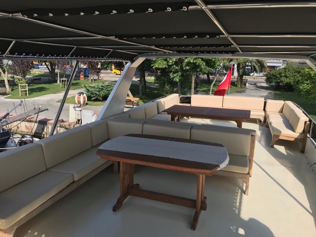 22 metre uzunluğuyla ferah bir kullanım alanı sağlayan yatımız, şık iç mekan tasarımı ve Boğaz’ın esintisini hissedebileceğiniz geniş güvertesiyle konuklarınızı büyüleyecek. Organizasyonunuzun türüne göre esnek masa düzeni ve kaliteli ses sistemi imkanlarımızla, etkinliğinizi tamamen size özel bir törene dönüştürüyoruz.